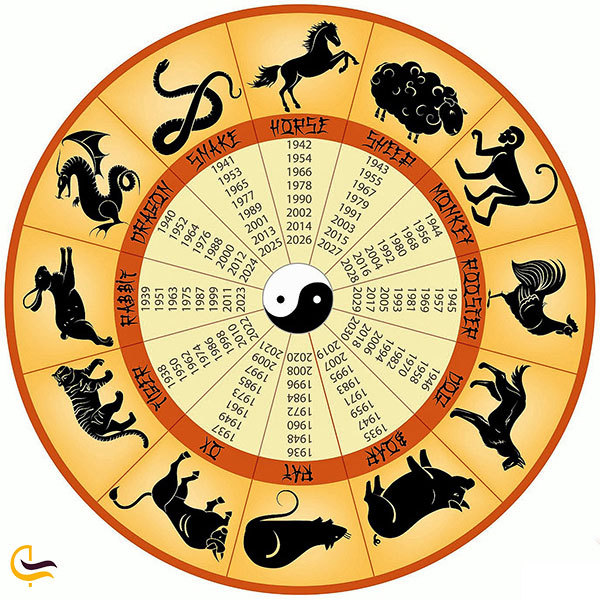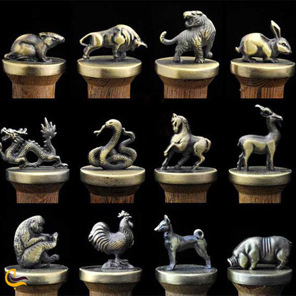 گاو، ببر، خرگوش، اژدها، مار، اسب، بز، میمون، خروس، سگ و خوک بهعنوان ۱۲ حیوانی شناخته میشوند که یکیپسازدیگری به عنوان نماد هر سال انتخاب شدهاند.